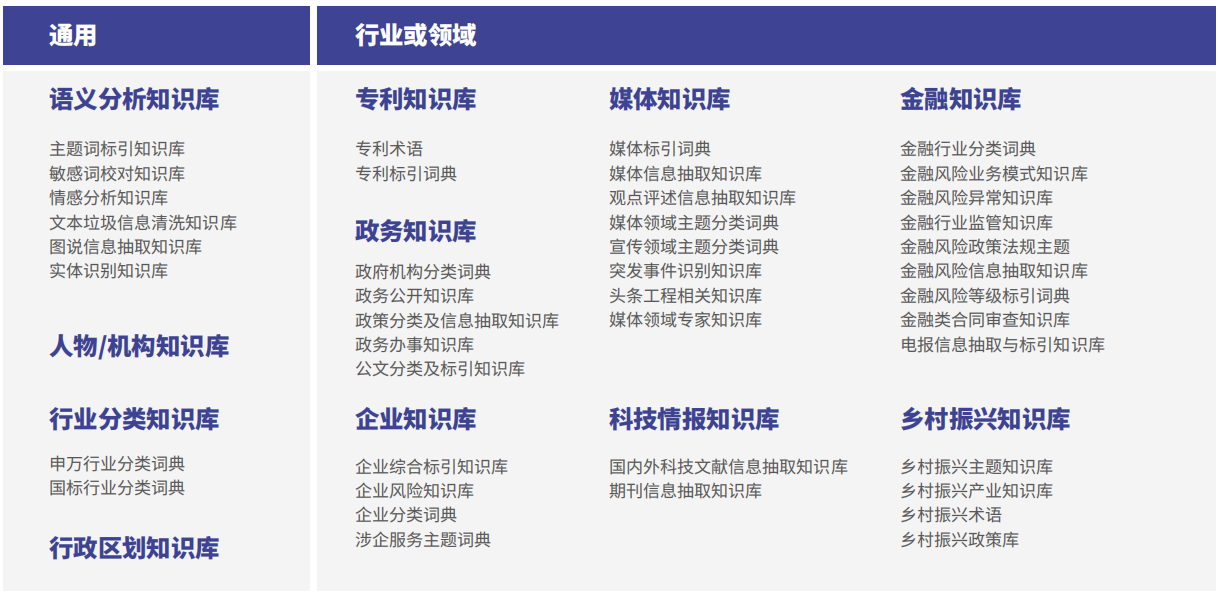 机器认知的核心能力之一是自然语言理解,而机器理解自然语言需要足够的知识库支撑。k8凯发国际基于自然语言处理技术、积累的各场景行业术语及2000余台服务器数据形成的各行业知识图谱,对海量多源异构数据进行融合、关联、标注以及知识化处理,构建形成大规模领域知识图谱。现在,公司拥有通用、行业/领域知识库共计23大类,每类知识库具有规模大、语义关系丰富、结构友好、质量精良等特点。
